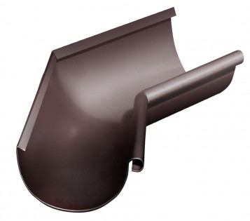Углы выполнены из стали с покрытием Aluzinc. Заготовки углов свариваются по технологии CMT ("холодный перенос металла"), с использованием медного припоя. Такая технология сварки позволяет предотвратить выгорание защитного покрытия металла и обеспечивает отличную защиту от коррозии. После сварки углы окрашивается на автоматической линии порошковой покраски с использованием атмосферостойких полиэфирных красок.Угол желоба внешний используется для изменения направления потока воды, монтируется на внешних углах кровли| Высота | 85 мм |